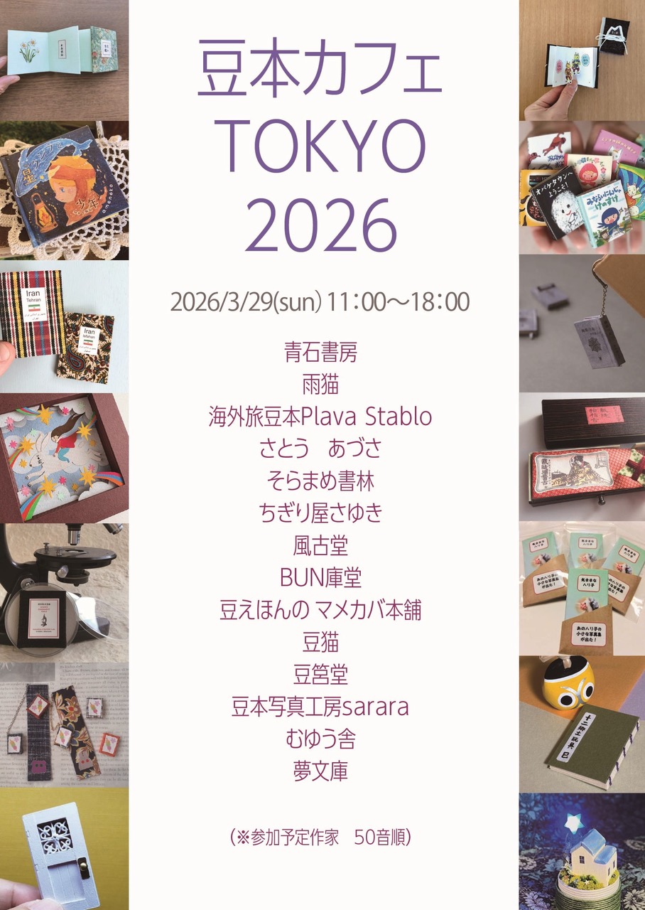 - 主催/日本豆本協会 開催日時/2025年9月28日(日)13:00〜16:30頃 12:30受付開始。時間内なら、いつ来場してもいつ退場してもOK。 13:00頃から赤井都さん・新谷佐知子さん(山小屋ブックス)トーク、 14:00頃から豆本ワークショップ、ワークショップ終了後に作家作品紹介・高橋起弥さんの本棚や書斎のあるドールハウス作品の紹介などがあります。 ...